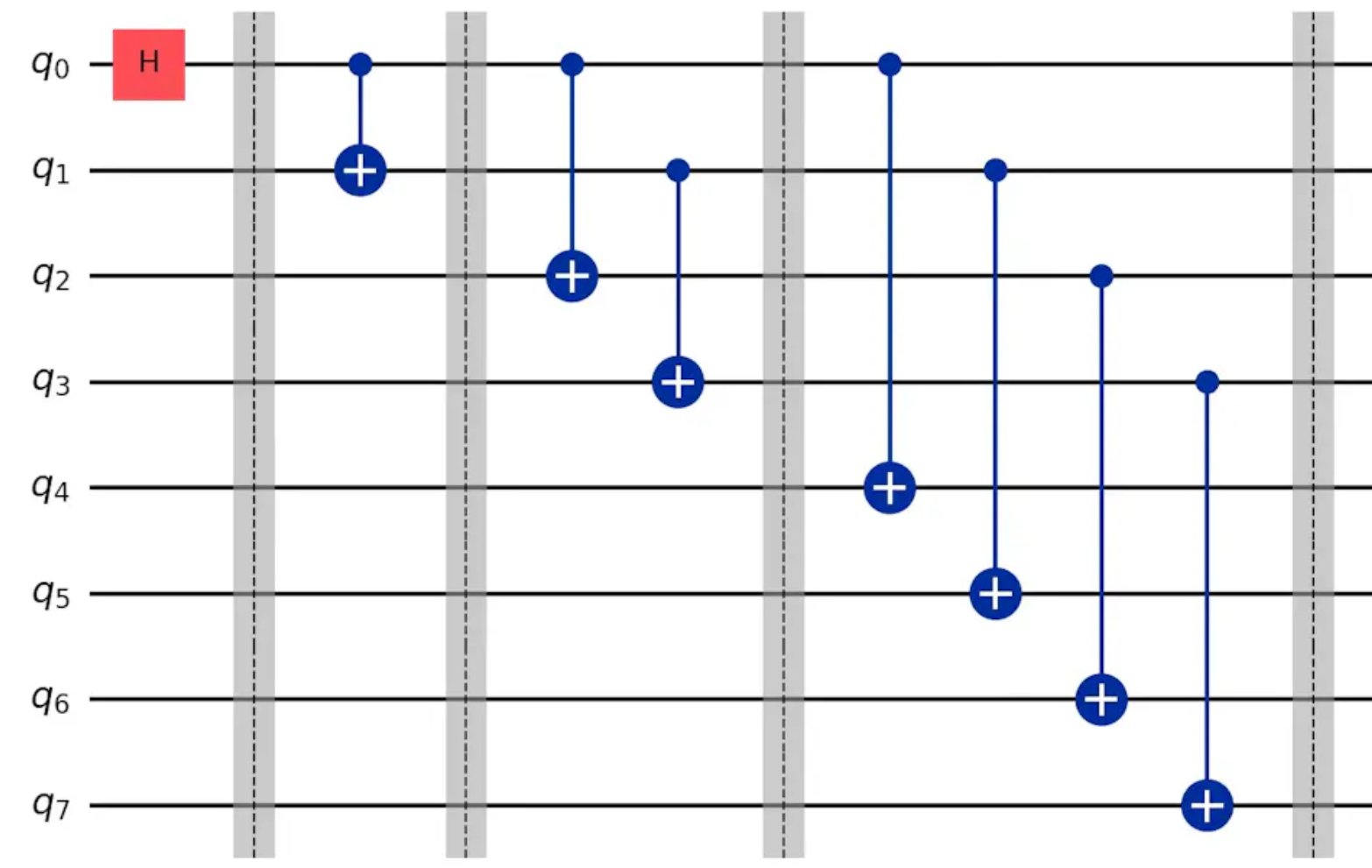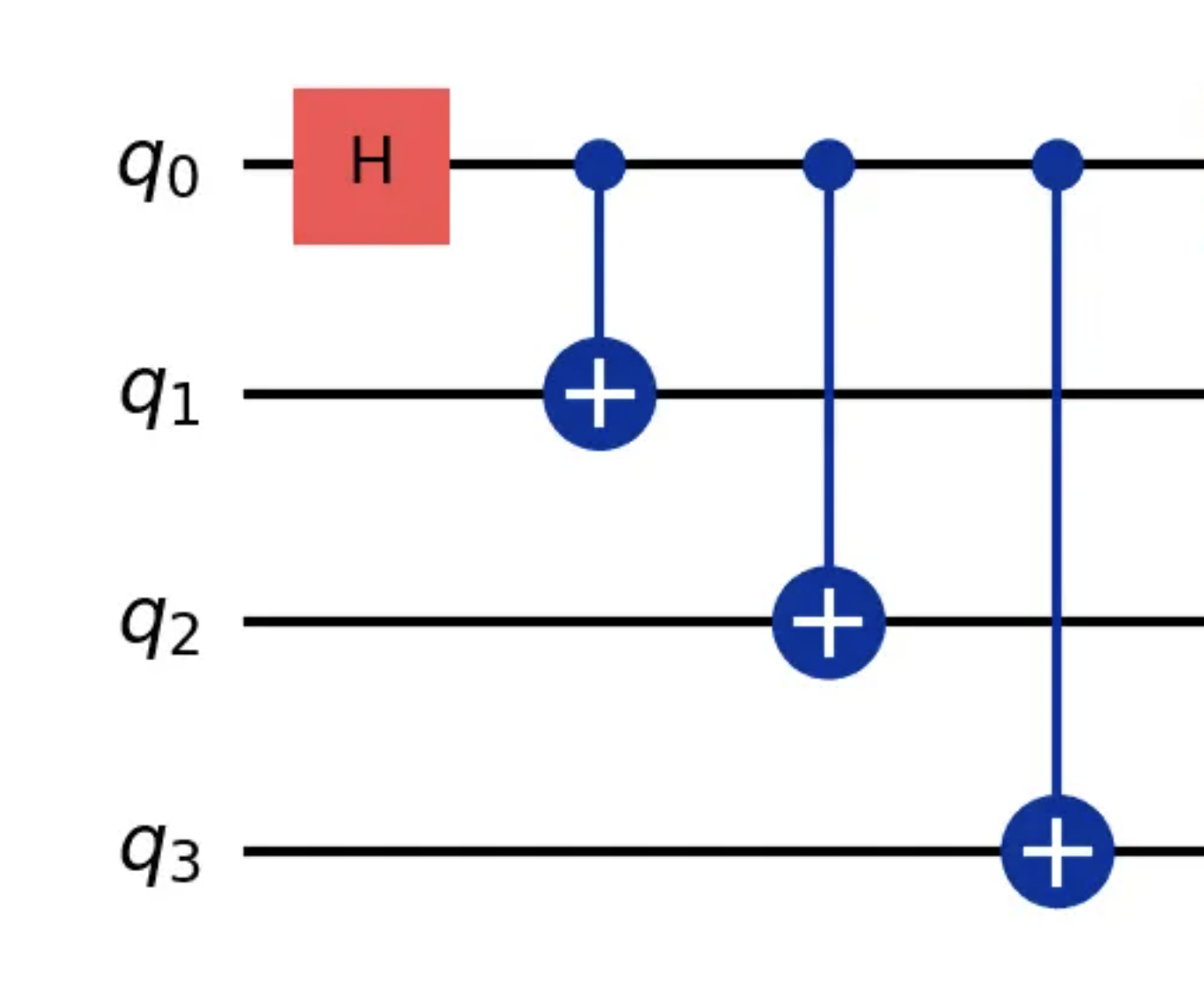By continuing to apply the controlled-X gate until the -th qubit is the target bit, we can prepare the GHZ state.